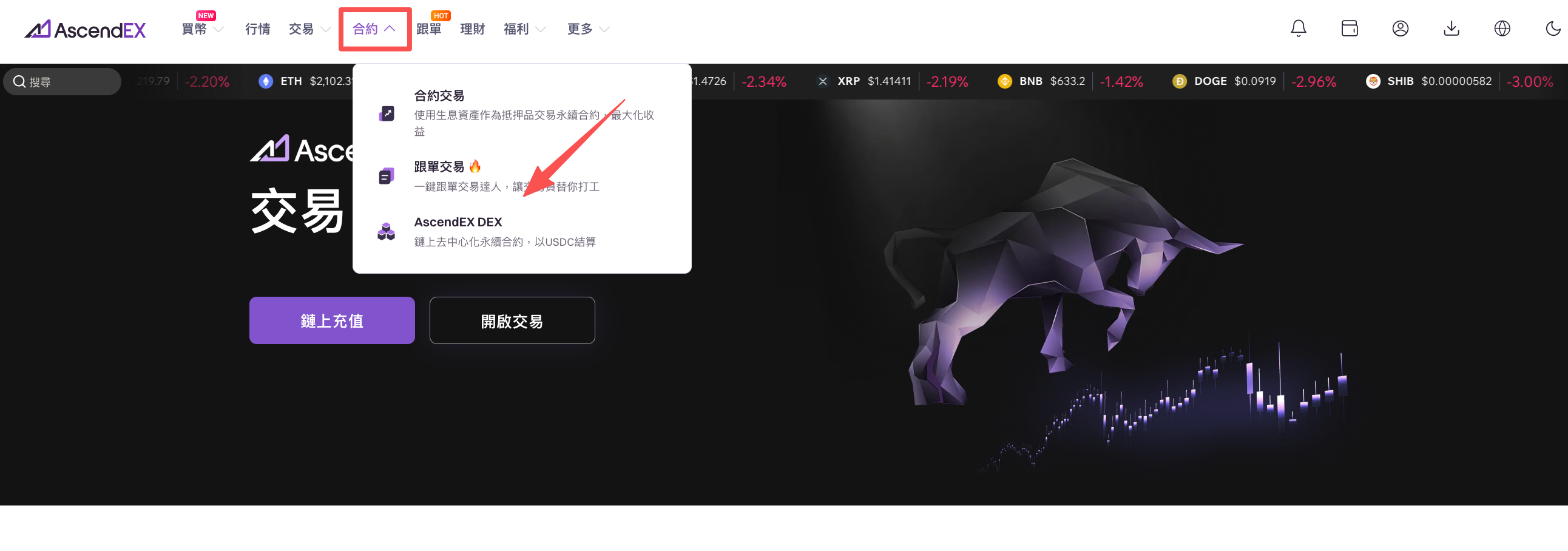 1. PC端前往首頁導覽列【DEX】頁面;